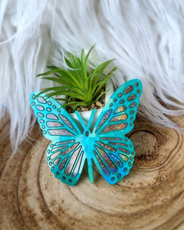 Vlinder met een holografisch effect* Te vullen met as en/ of kleur * Grootte is 9,3 cm x 10,5 cm* Mogelijkheid om hem op te hangen* Toevoegen van een ezeltje is mogelijk; meerprijs van €1,-