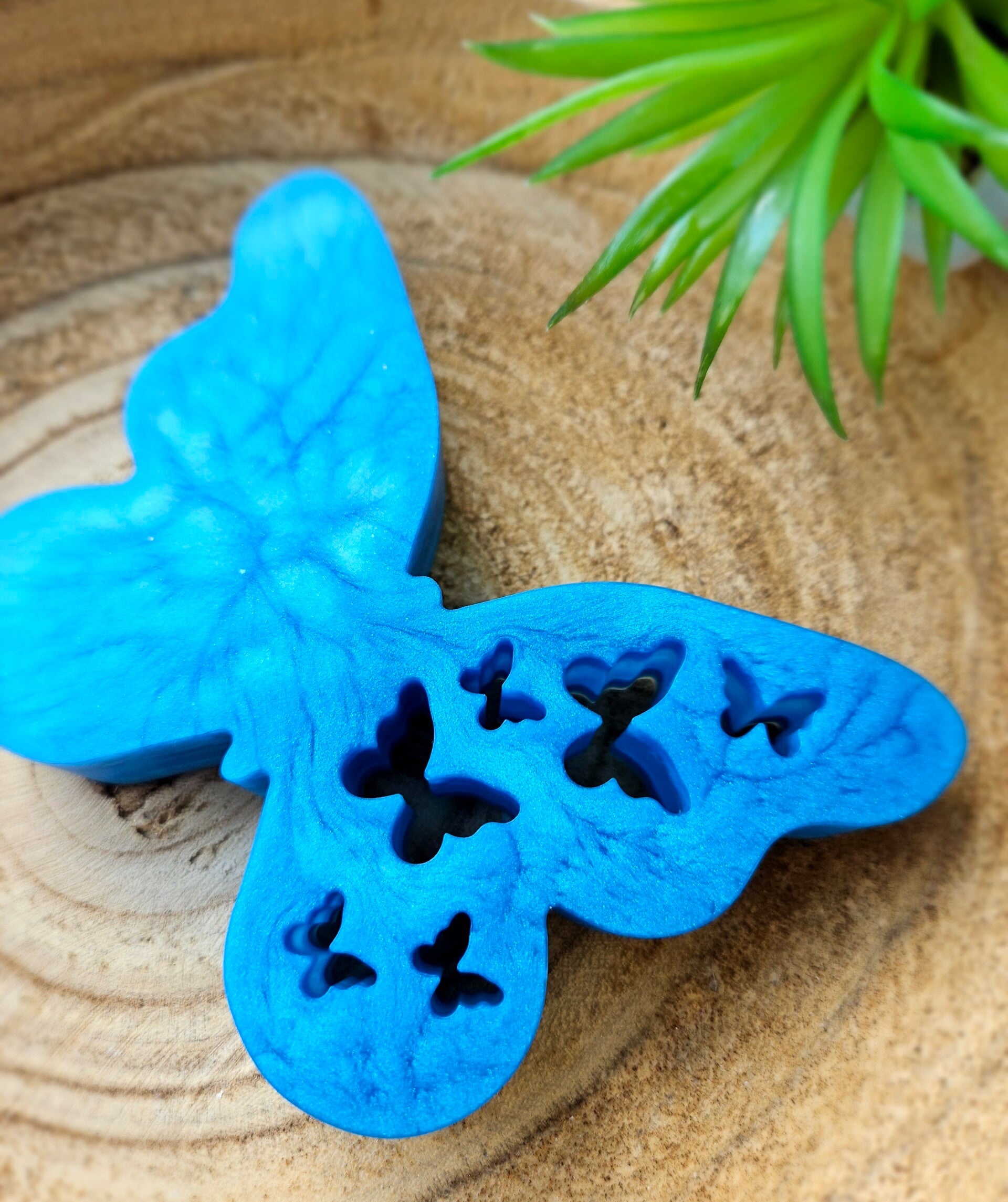 Vlinder* Te vullen met as en/ of kleur* Mal heeft kleine open vlindertjes erin* Accessoire komt mat uit de mal, dus niet glanzend* Maat is 12cm x 9cm